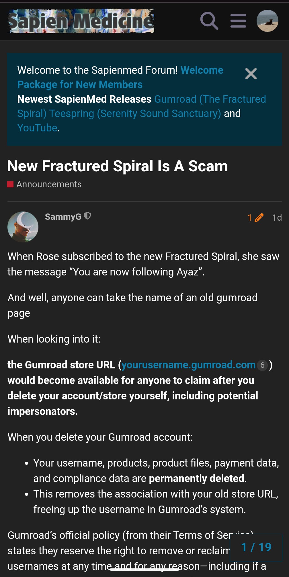 “So I would not suggest trusting this gumroad. Scammers did this in the past as well and made up sapien medicine names to the gumroad accounts they were making”