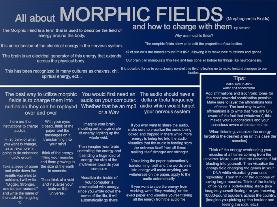 Hey everyone, I recently stumbled upon a morphic field “guide” that claims to have the perfect steps to achieve maximum efficiency from fields. I would just like to know everyone’s take on it.