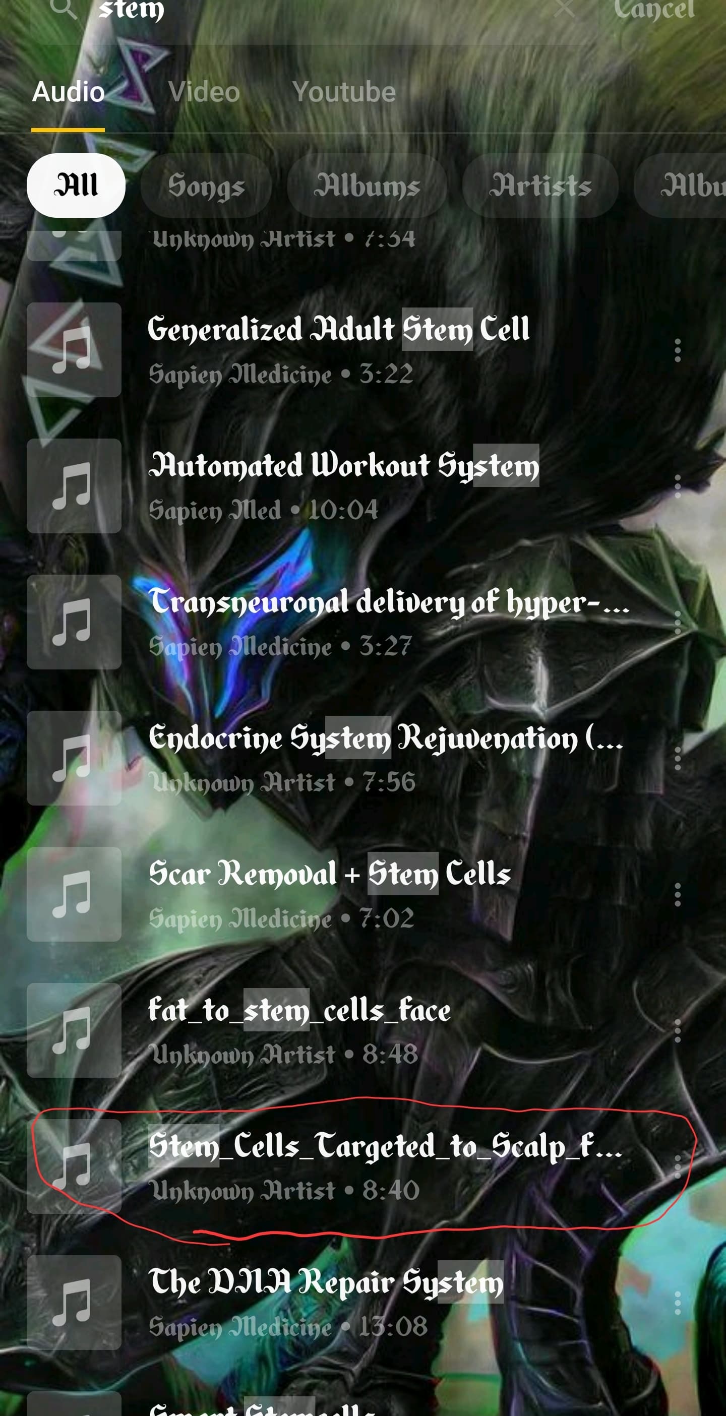 So if you play the file it only says “stem cells targeted”?